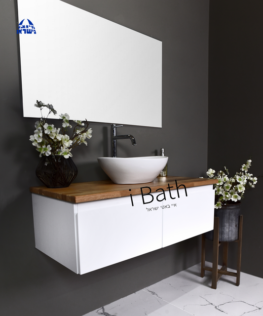 ארון אמבטיה תלוי בשילוב עץ מלא דגם ריו RIO