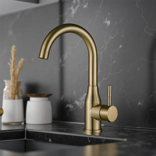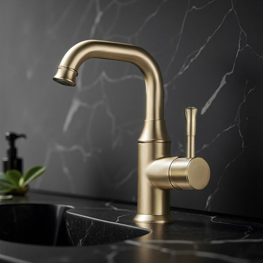 ברז פרח ניצב פיה קשתית לכיור רחצה זהב מוברש AG