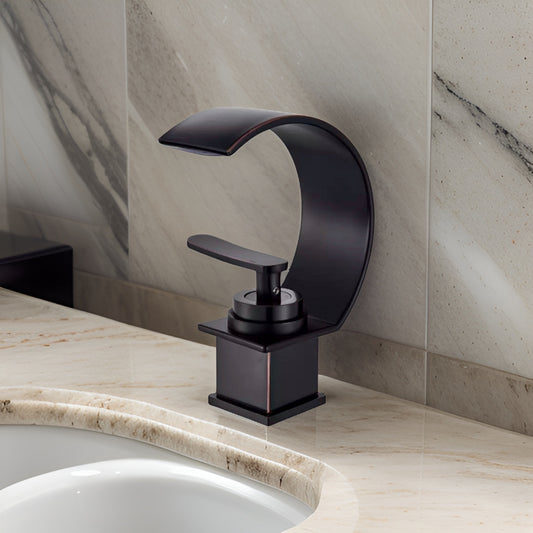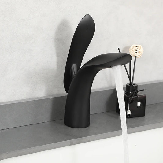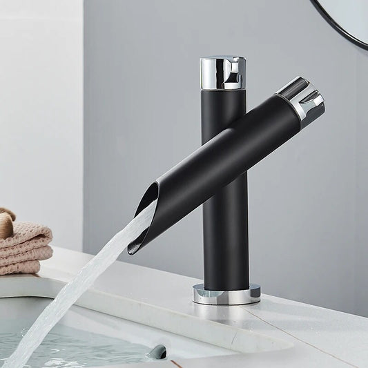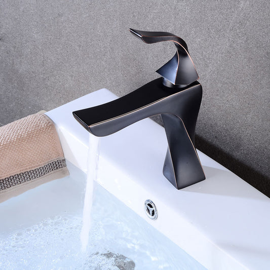ברז פרח לכיור רחצה שחור וברונזה צורת מפל