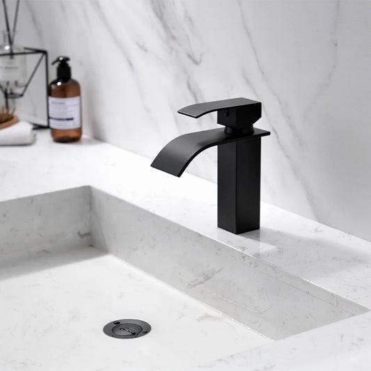 ברז פרח מרובע לכיור רחצה שחור מט מפל WAS