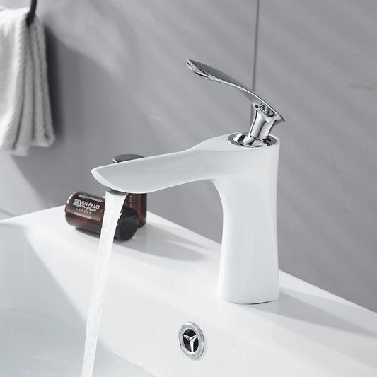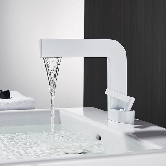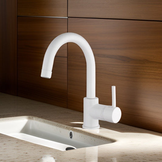 ברז פרח ניצב פיה קשתית לבן מבריק לכיור רחצה WA