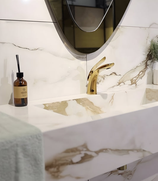 ברז פרח לכיור רחצה לבן מבריק וזהב מבריק