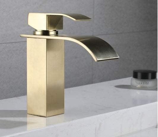 ברז פרח לכיור רחצה זהב מוברש מפל