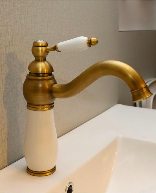 ברז פרח יוקרתי לכיור רחצה ברונזה וקרמיקה לבן AB
