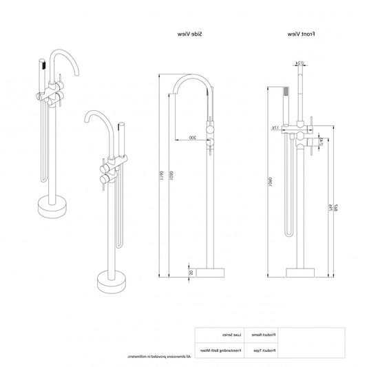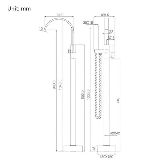 ברז אמבטיה מהרצפה שחור מט מרובע WA