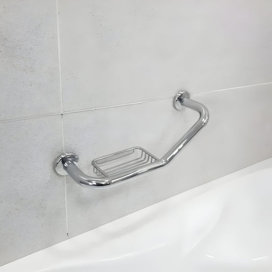 ידית אחיזה + סבוניה נירוסטה לתליה במקלחת ניקל מבריק