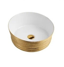כיור מונח חרס עגול לבן מבריק וזהב מחוספס TOP