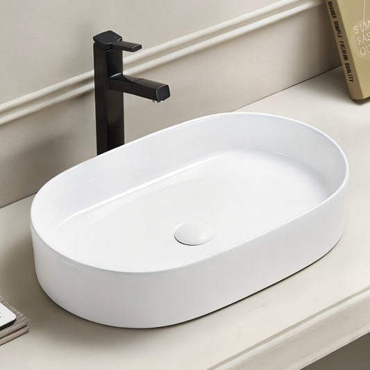כיור מונח חרס אובלי לבן מבריק 61 ס״מ דגם LEO