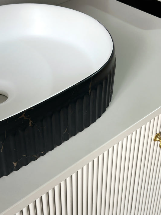 כיור מונח חרס אובלי מחורץ שחור מט ולבן מט LUSSO