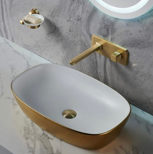 כיור מונח חרס יוקרתי לבן וזהב מט מבית CATLÀNIO