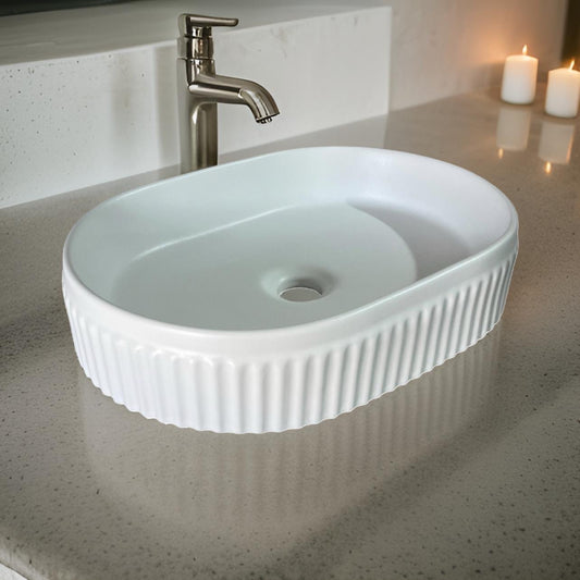 כיור מונח חרס אובלי מחורץ לבן מט LUSSO