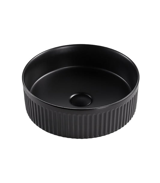 כיור מונח חרס עגול מחורץ שחור מט LUSSO