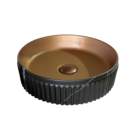 כיור מונח חרס עגול מחורץ רוז גולד ושחור מט LUSSO
