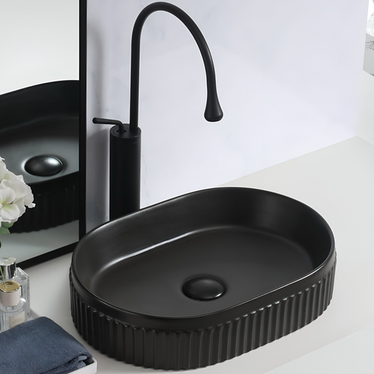 כיור מונח חרס אובלי מחורץ שחור מט LUSSO
