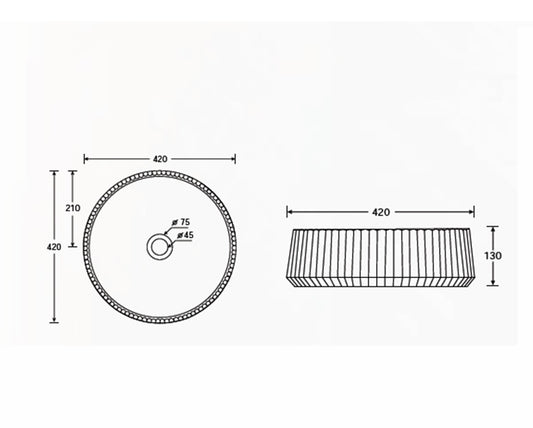 כיור מונח חרס עגול מחורץ לבן מט LUSSO
