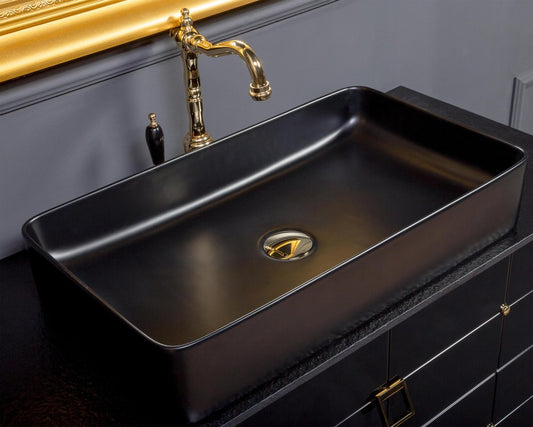 כיור מונח חרס מלבני שחור מט דגם סוהו SOHO