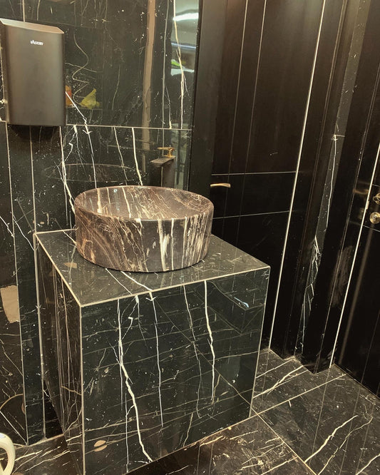 כיור מונח חרס עגול בצבע שחור דמוי שיש דגם קינג