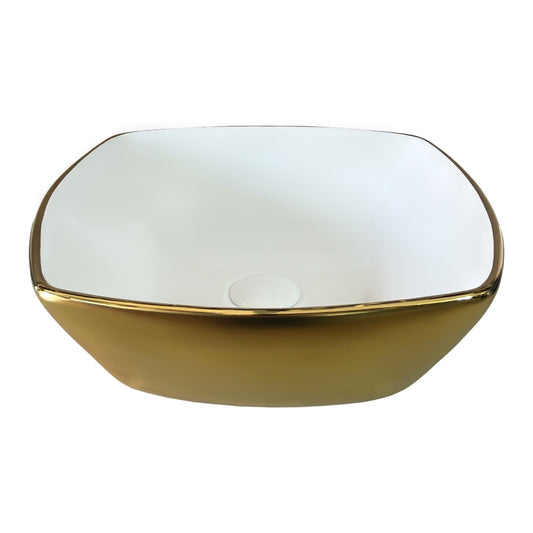 כיור מונח מלבני לבן מבריק ושילוב זהב