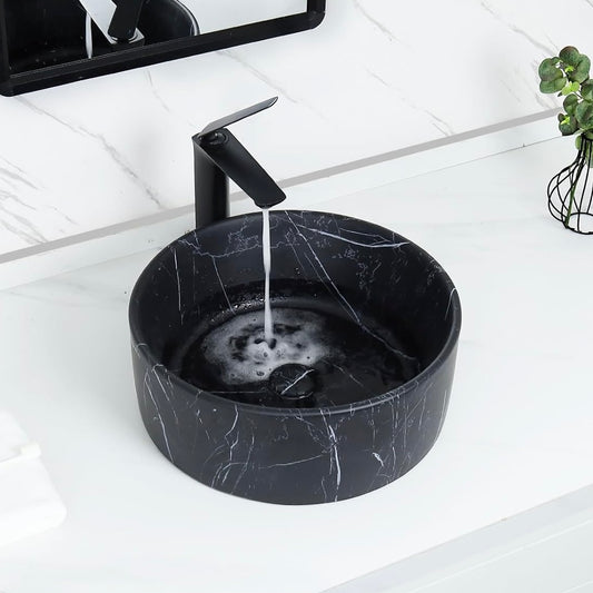 כיור מונח חרס עגול סולידי שיש שחור מט מבית CATLÀNIO