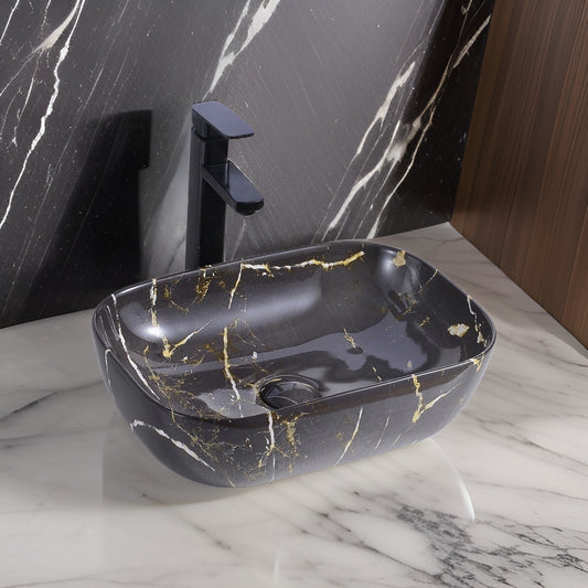 כיור מונח חרס מלבני שחור מבריק ורוז גולד