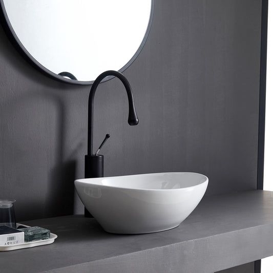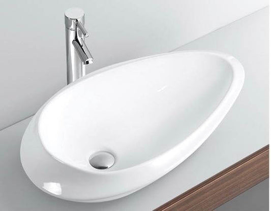 כיור מונח חרס אובלי לבן מבריק מבית SMA
