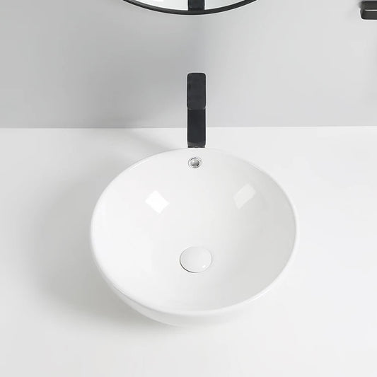 כיור מונח חרס עגול לבן מבריק קוטר 32 ס״מ