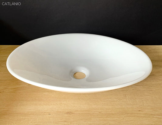 כיור מונח חרס אובלי מגש צף לבן מבריק מבית CATLÀNIO