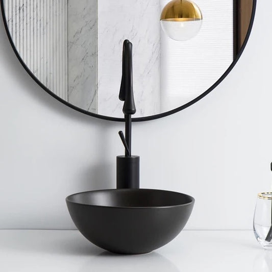 כיור מונח חרס עגול שחור מט קוטר 28 ס״מ