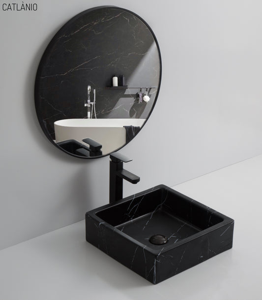 כיור מונח חרס מרובע סולידי שיש שחור מבית CATLÀNIO