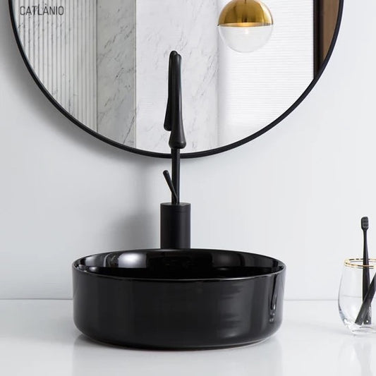 כיור מונח חרס עגול שחור מבריק מבית CATLÀNIO