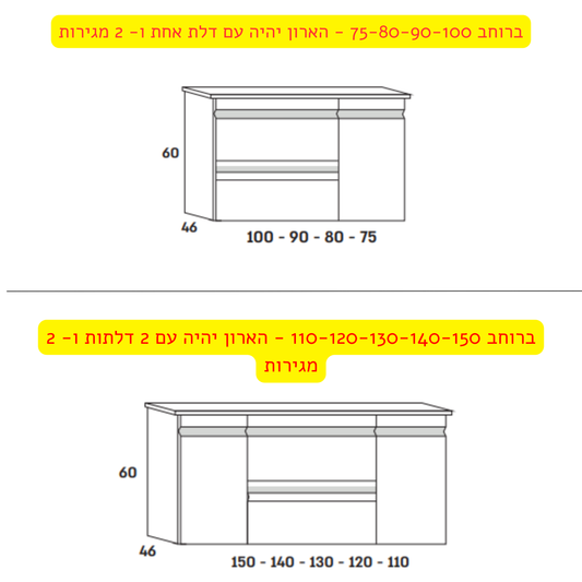 ארון אמבטיה תלוי דלת ושתי מגירות דגם לירון LIRON