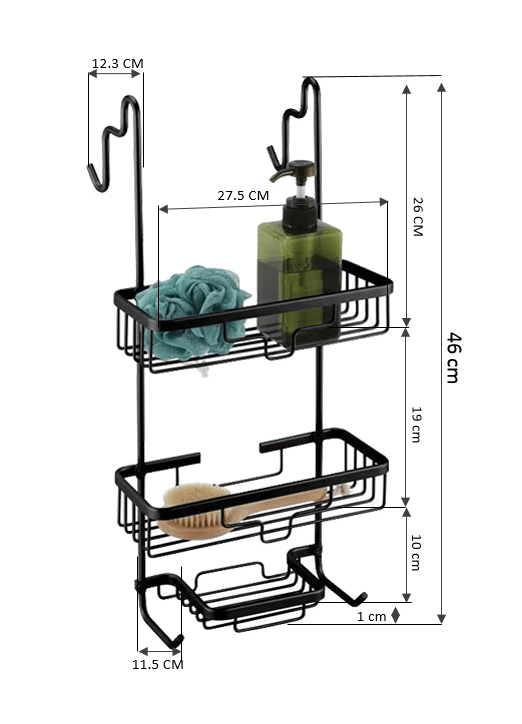 מדף מקלחת כפול שחור מט מלבני מקצועי