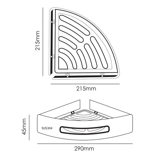מדף פינתי חד קומתי צבע ניקל מבריק