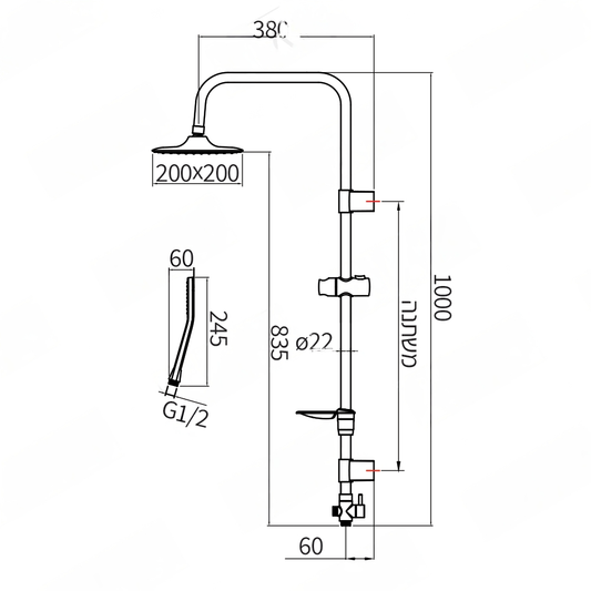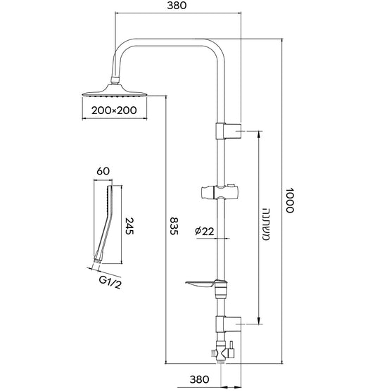מוט פינוק טלסקופי שחור מט 90 מעלות מרובע דגם צפת premium