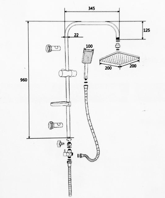 מוט קומפלט ניקל מבריק כולל מזלף שלושה מצבים SD
