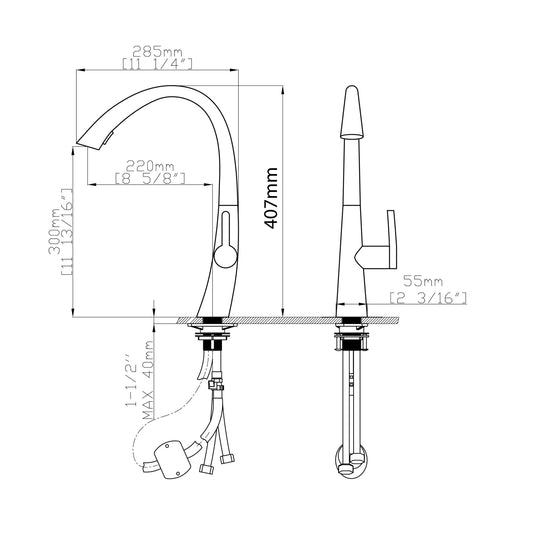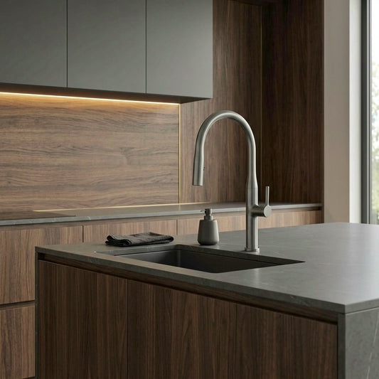 ברז מטבח נשלף אפור גרפיט מוברש ראש נסתר דגם TOP ציפוי PVD