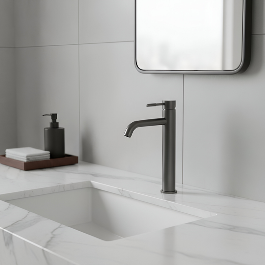 ברז פרח יוקרתי גבוה לכיור מונח אפור גרפיט מוברש TOP ציפוי PVD