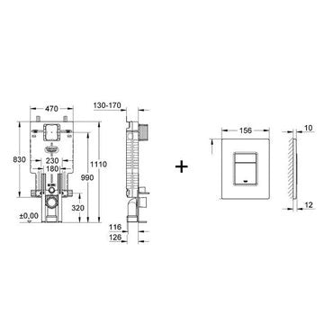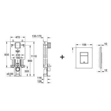 מיכל הדחה סמוי גרואה + לחצן לבן מרובע