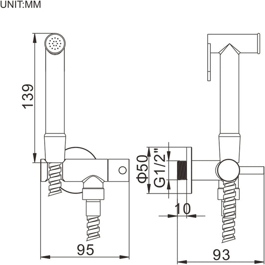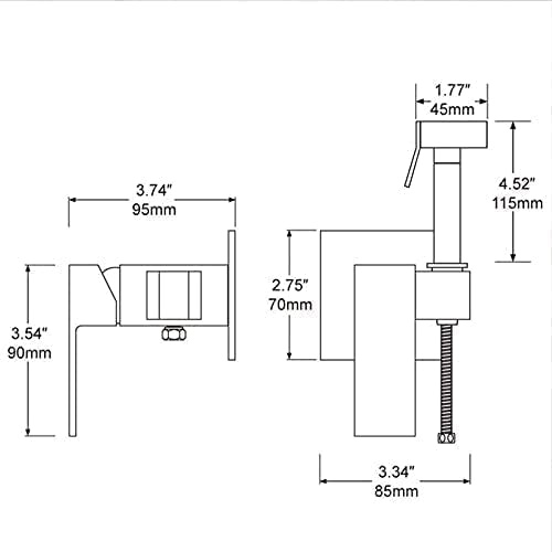 מערכת מיתז בידה מרובע ניקל מבריק כולל נקודת מים ברז צדדי BRASS