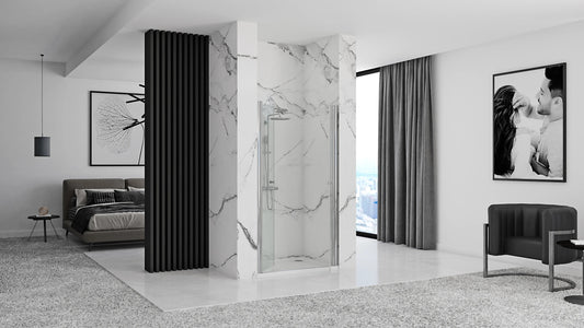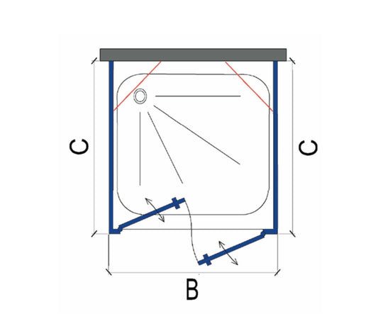 מקלחון חזית פרזול שחור, 2 דפנות קבועות ו 2 דלתות נפתחות פנימה והחוצה