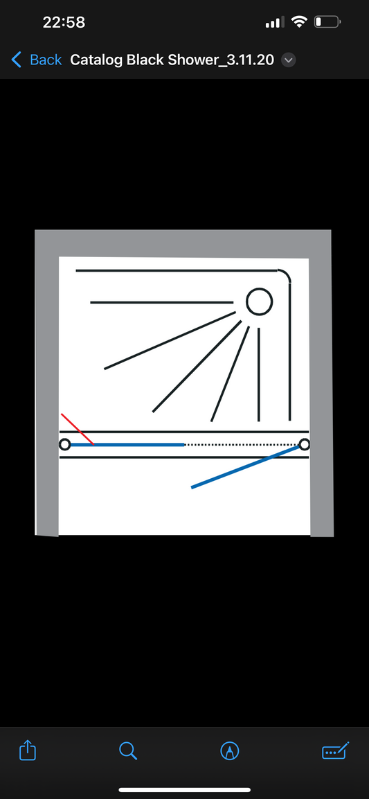 מקלחון חזית המורכב מדופן קבועה ודלת הנפתחת החוצה פרזול שחור מט