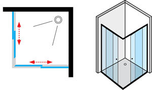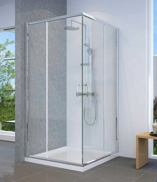 מקלחון פינתי מרובע עם דלתות הזזה פרזול ניקל זכוכית שקופה