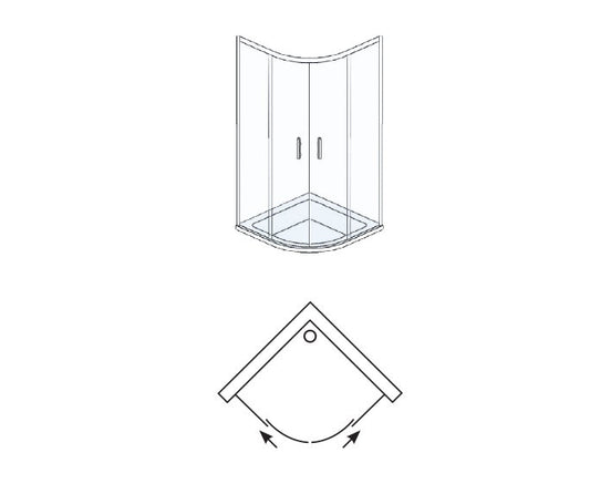 מקלחון פינתי מעוגל עם דלתות הזזה פרזול ניקל זכוכית שקופה