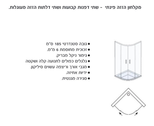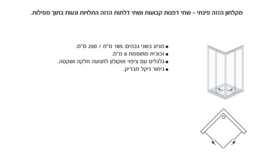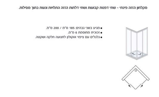 מקלחון פינתי מרובע הזזה צרוב פסים