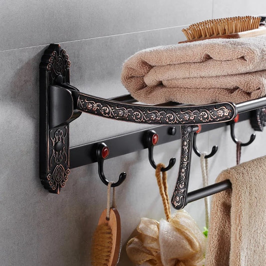 מתלה ומדף בית מלון יוקרתי צבע שחור מט