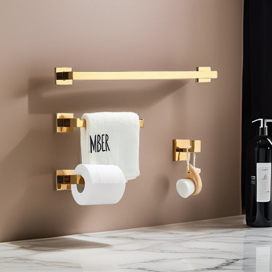 סט אביזרי אמבטיה מרובע 4 חלקים זהב מבריק
