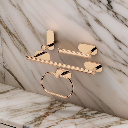 סט אביזרי אמבטיה הדבקה רוז גולד מבריק עדין