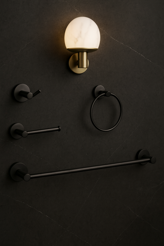 סט אביזרי אמבטיה יוקרתי שחור מט עגול דגם TOPציפוי PVD