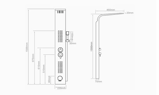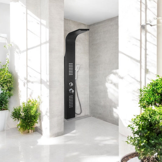 פנל רחצה למקלחת עם אינטרפוץ מובנה נירוסטה מוברש