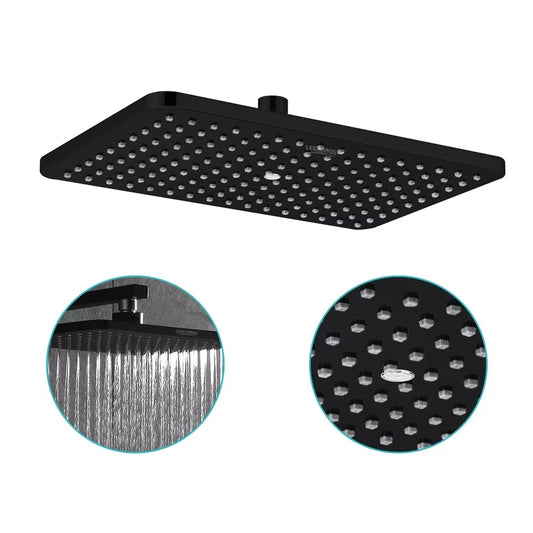 ראש מקלחת מרובע יוקרתי צבע שחור מט 22.5 ס״מ